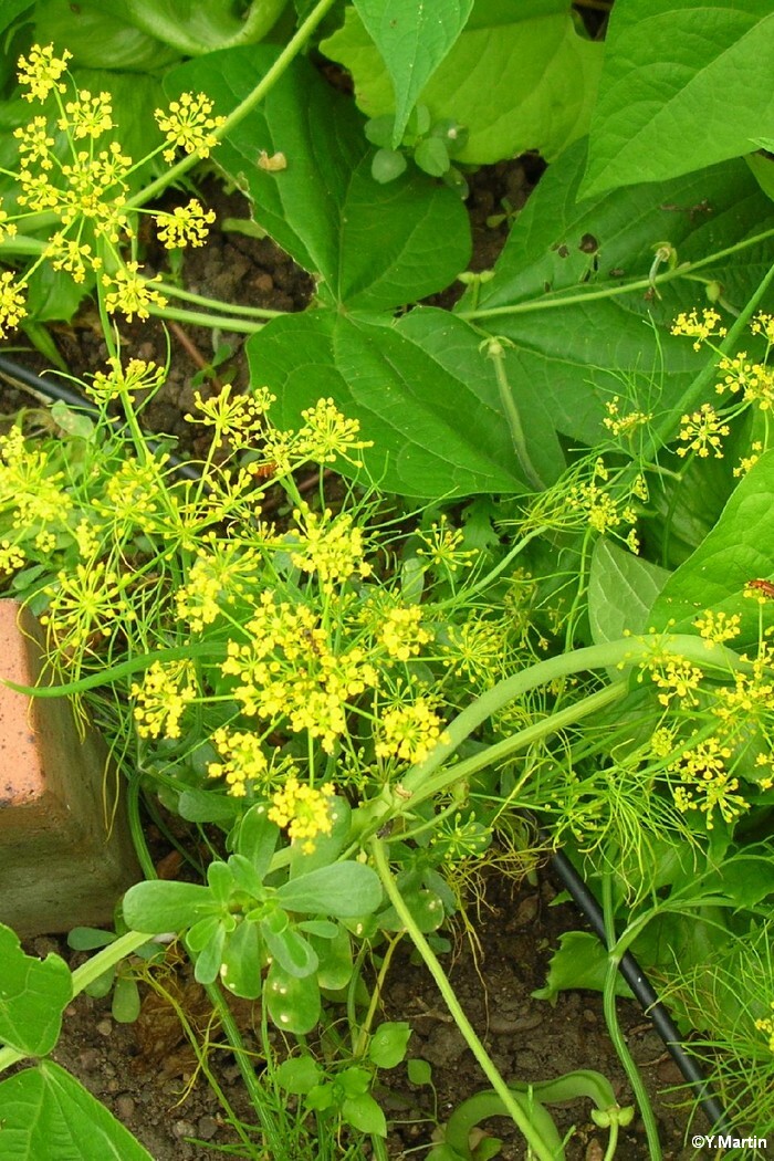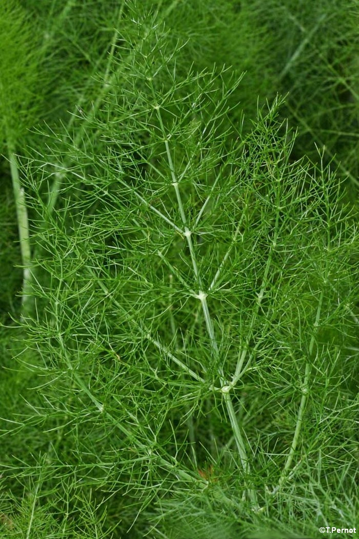 Plante mesurant entre 1 m 50 et 2 m de haut. Son port est léger et son feuillage bleuté est finement découpé. Les fleurs jaunes sont réparties en ombelles. Les fruits très odoriférants mesurent 5 à 9 mm de long et sont présents par deux.